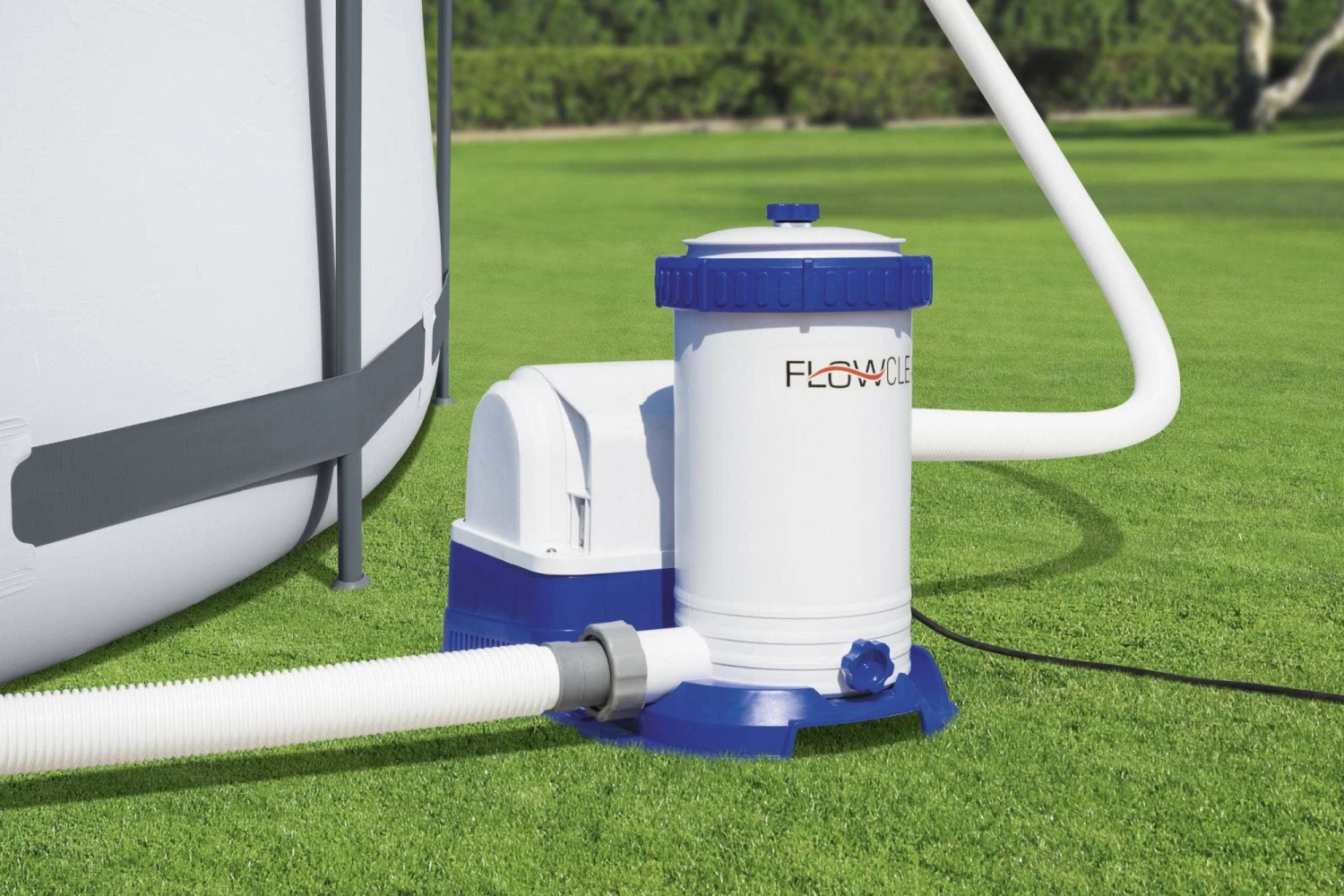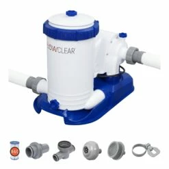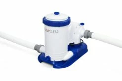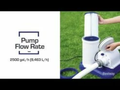 The Bestway® 2,500 gal. Flowclearâ„¢ Filter Pump is a great way for pool owners to keep their pool water sparkling clean over the summer months. This pump works its magic by circulating water out of the pool, through a filter and back again. With everything you need to keep your pool water pristine, this Flowclear pump kit is a must-have! The 2,500 gal. Flowclear Filter Pump is recommended for use with 300-16,400 gal. (1,100-62,000 L) pools and works perfectly with Type IV-B filter cartridges. Put the fun in functional with the Bestway 2,500 gal. Flowclear Filter Pump – which is compatible with almost all above ground pools, no matter the brand.